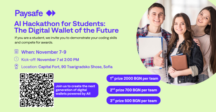 AI хакатон за български студенти ще се състои в периода 7-9 ноември. Това съобщават организаторите от Paysafe, водеща платформа за разплащания.